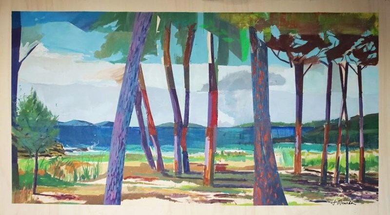 "sanxenxo, Val do Dorrón"Mixta sobre lienzo 60x120cm 1er Premio XVI Concurso de pintura al aire libre del Circulo cultural deportivo de Sanxenxo.