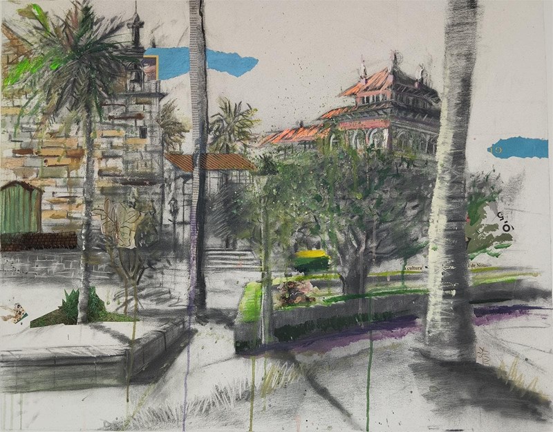 Noia, Alameda. Carboncillo, collage y acrílico sobre lienzo / 81 x 100 cm